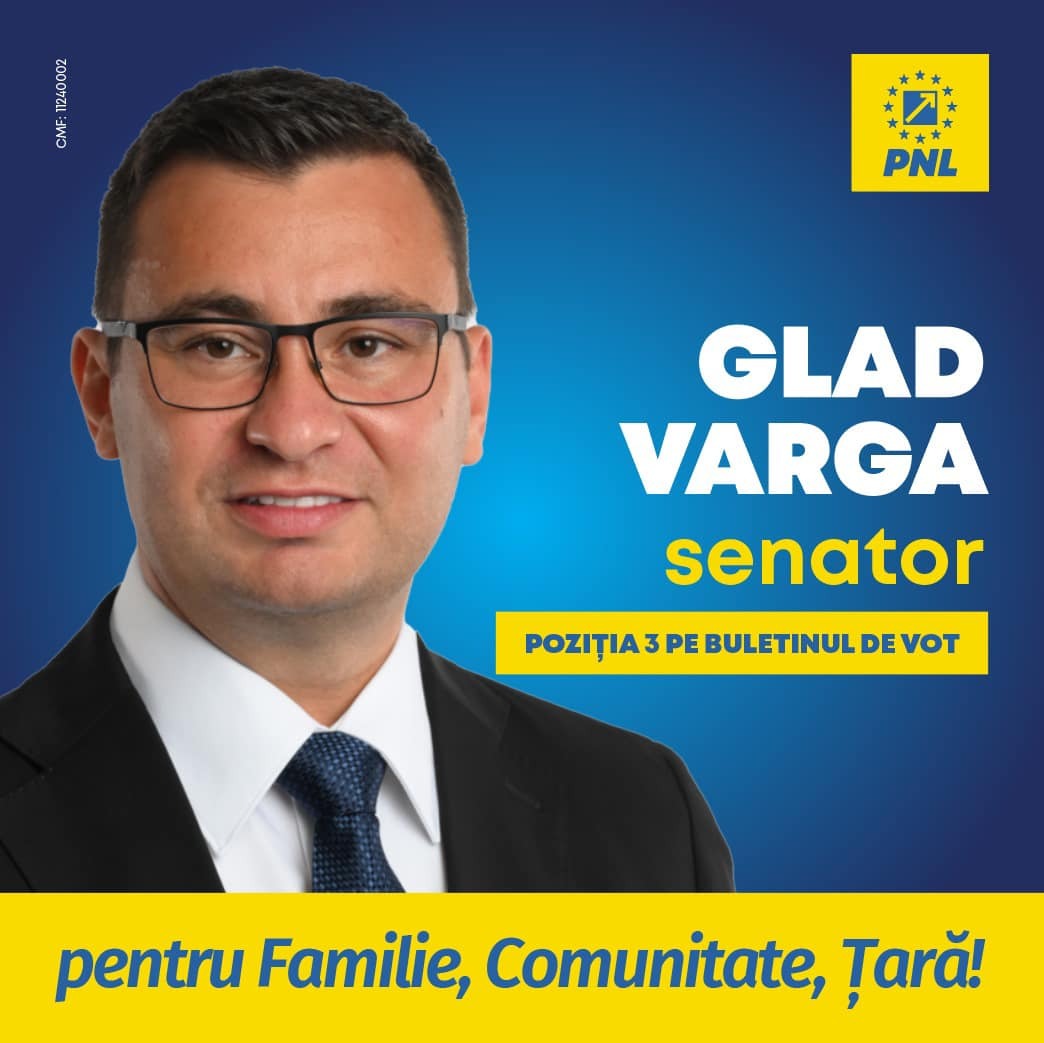 Glad Varga va invită să susțineți echipa PNL la alegerile din acest an. „Pornim cu inima deschisă și cu dorința sinceră de a face o diferență reală în societate prin implicare, muncă și dedicare. Candidatura mea pentru Senat este mai mult decât o funcție – este un angajament față de toți cei care cred în valori solide, în respect pentru cei dragi și în sprijin necondiționat pentru comunitățile locale. Pe 1 Decembrie, mă regăsiți la poziția 3 pe buletinul de vot, și vă invit să susțineți echipa PNL Arad pentru Camera Deputaților și Senat”, a spus Glad Varga.
